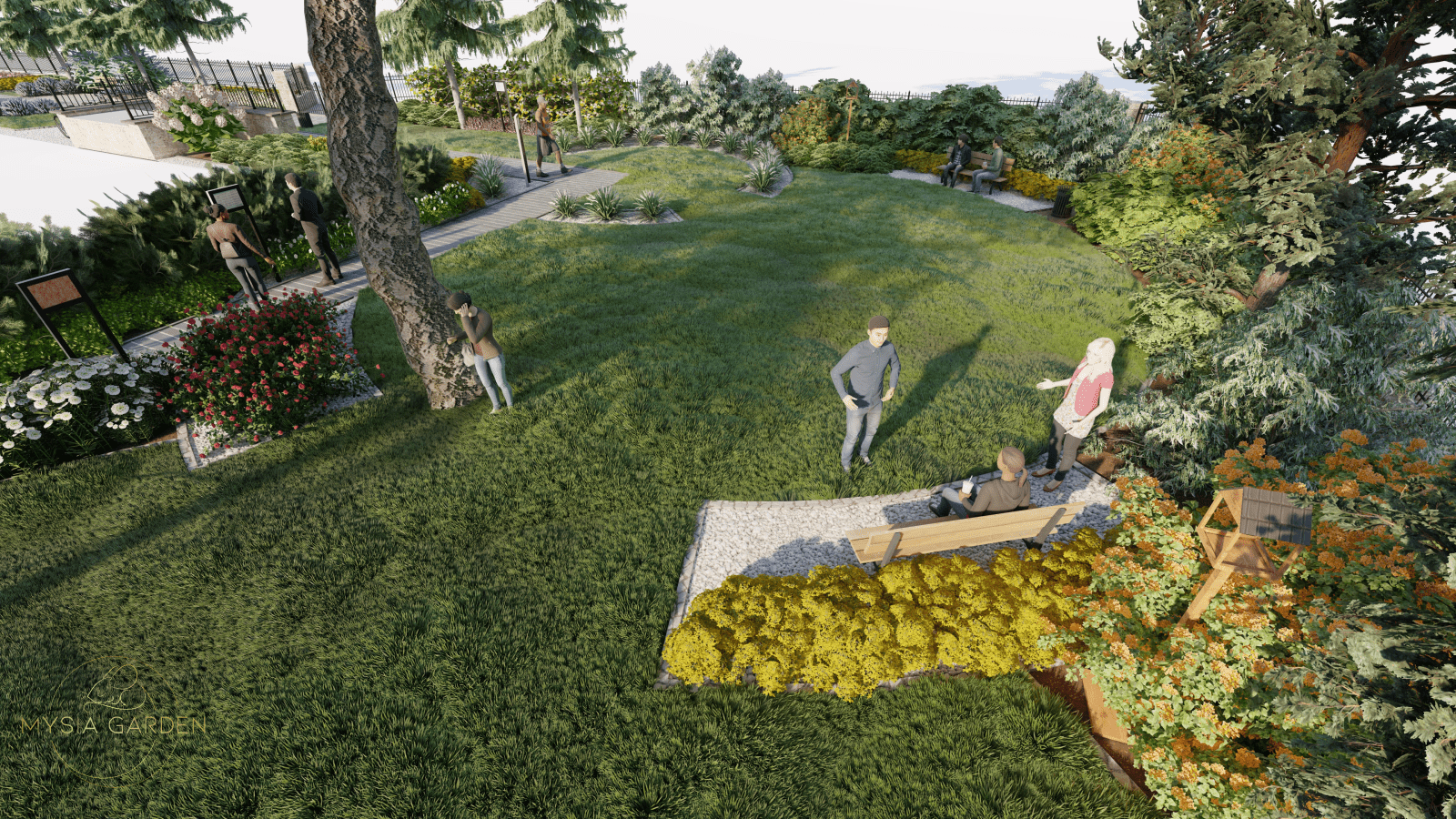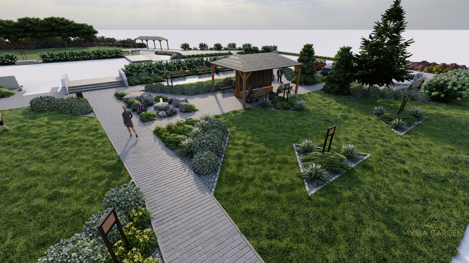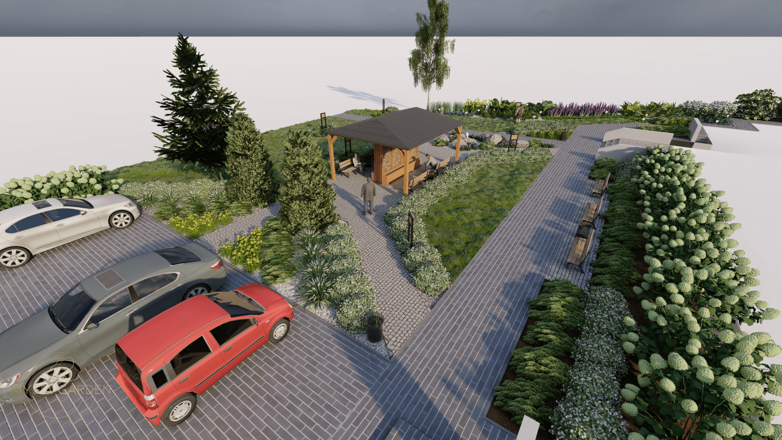 Celem założenia dla tego projektu było, aby obiekt ten otworzył się dla mieszkańców i stał się bardziej atrakcyjnym i częściej odwiedzanym miejscem. Z tego względu wzbogacono przestrzeń o nowe nasadzenia, ale również dodano więcej małej architektury co dodatkowo uatrakcyjniło to miejsce. Z racji iż, GMK połączony jest z przechodnią zaprojektowano tężnie solankową, która będzie ogólnodostępna dla mieszkańców. Z lewej strony budynku powstał ekologiczny aspekt w postaci ogrodu deszczowego. Ten system odwadniający, który gromadzi wody opadowe sprawia, że deszczówka pozostaje w przyrodzie, zamiast spływać do kanalizacji. Tylna część założenia miała pozostawić jak najwięcej wolnej przestrzeni, ponieważ będą tutaj organizowane wydarzenia okolicznościowe. Z tego względu boki zostały obsadzone miododajnymi roślinami oraz domkami dla owadów. Tył założenia pozostawiono istniejący drzewostan a niższe piętro zostało uzupełnione roślinami przyjaznymi dla ptaków. W tej części powstały budki i karmniki dla ptaków.