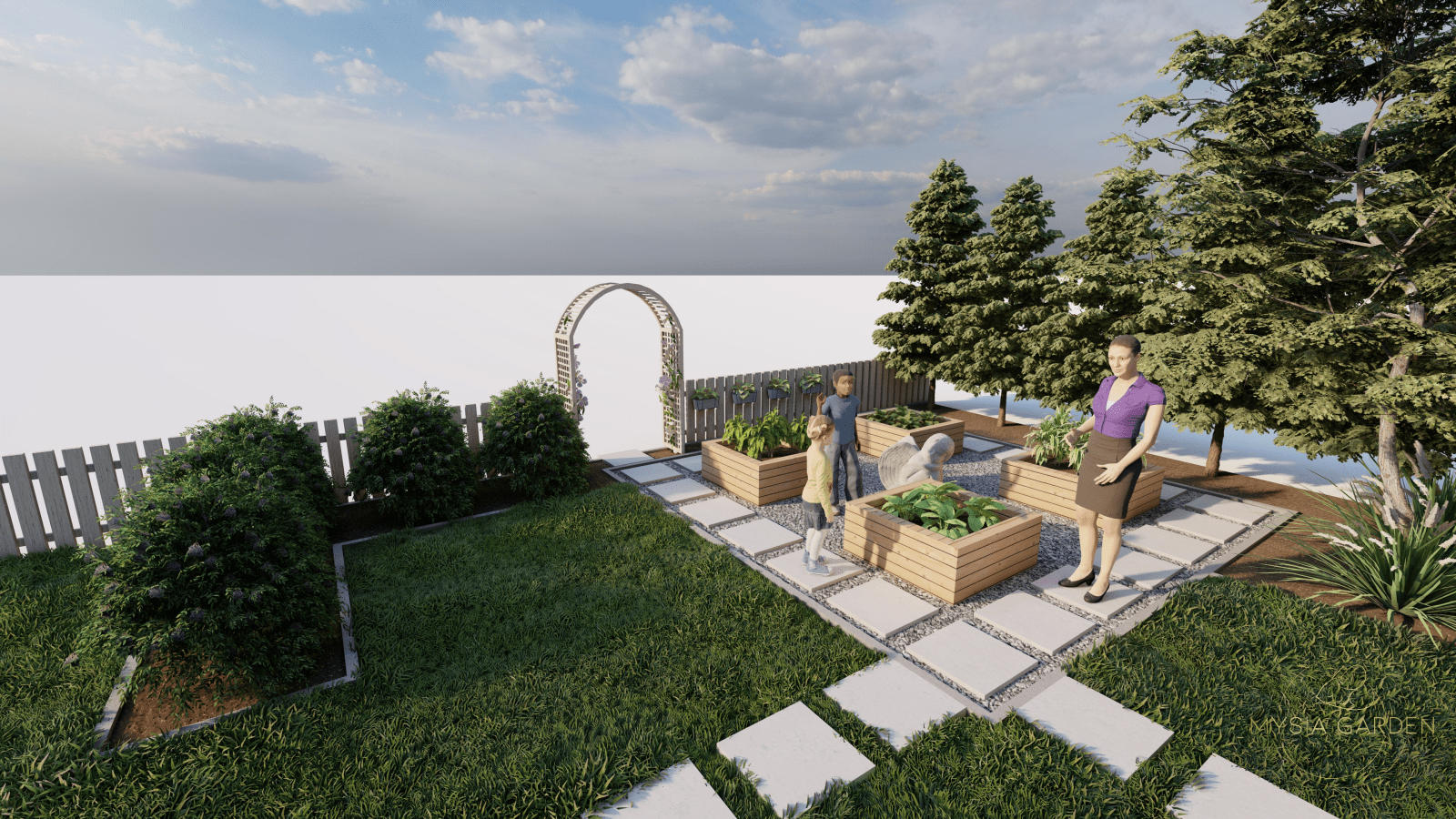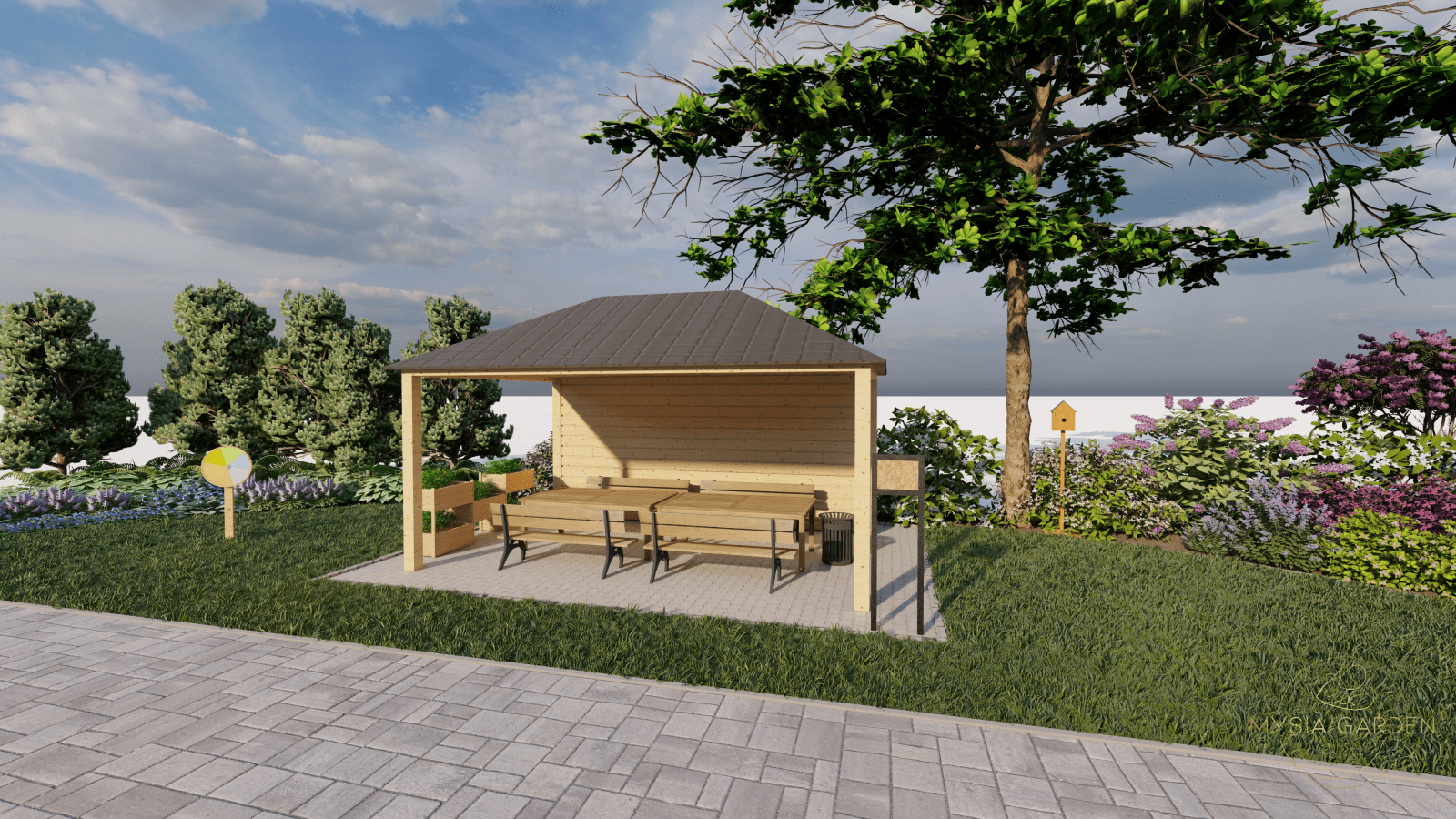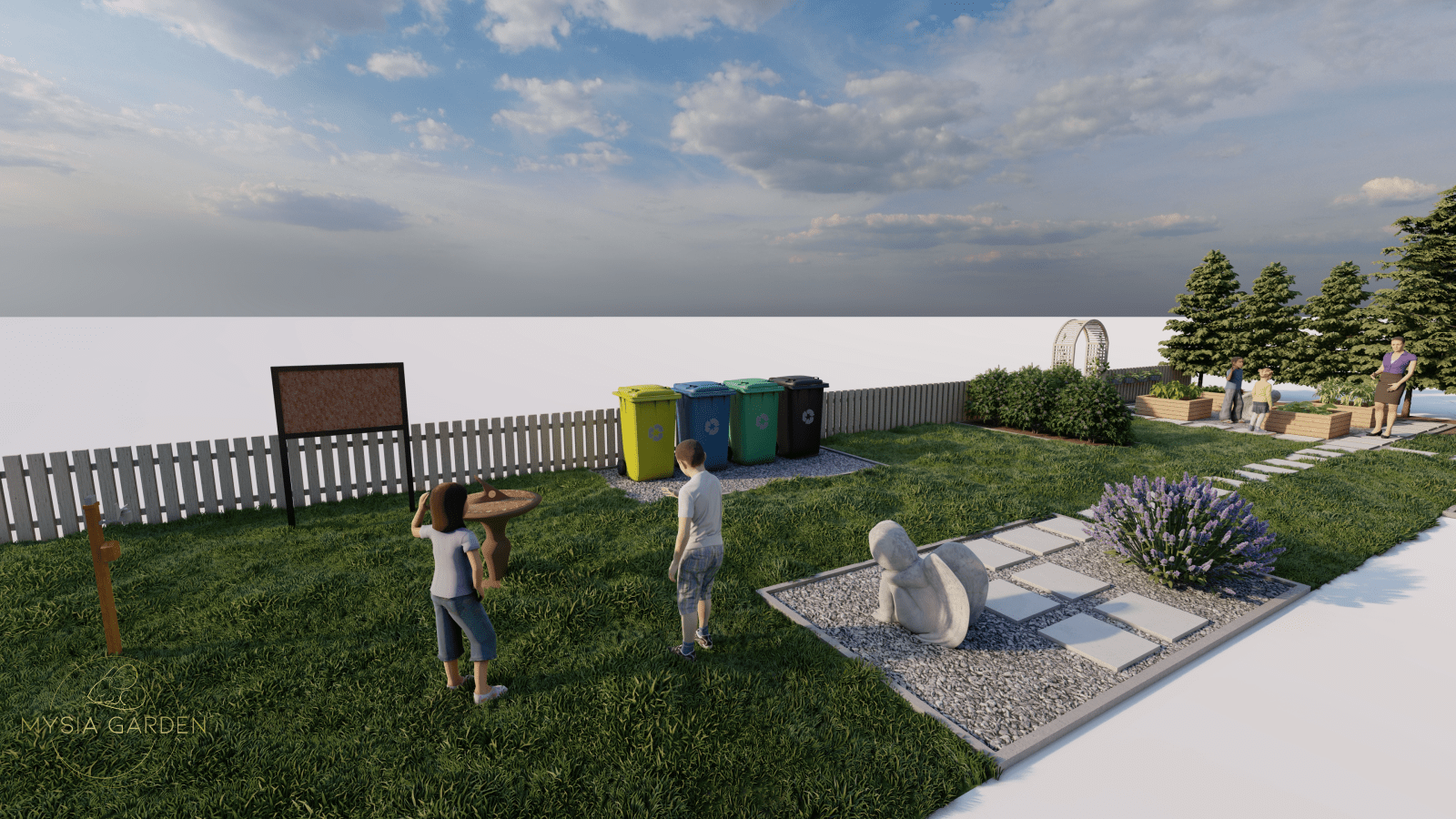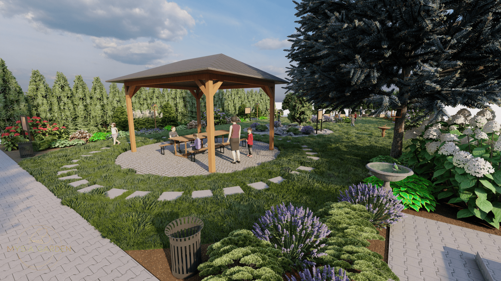 Celem założenia dla tego projektu było, aby obiekt ten otworzył się dla mieszkańców i stał się bardziej atrakcyjnym i częściej odwiedzanym miejscem. Z tego względu wzbogacono przestrzeń o nowe nasadzenia, ale również dodano więcej małej architektury co dodatkowo uatrakcyjniło to miejsce. Z racji iż, GMK połączony jest z przechodnią zaprojektowano tężnie solankową, która będzie ogólnodostępna dla mieszkańców. Z lewej strony budynku powstał ekologiczny aspekt w postaci ogrodu deszczowego. Ten system odwadniający, który gromadzi wody opadowe sprawia, że deszczówka pozostaje w przyrodzie, zamiast spływać do kanalizacji. Tylna część założenia miała pozostawić jak najwięcej wolnej przestrzeni, ponieważ będą tutaj organizowane wydarzenia okolicznościowe. Z tego względu boki zostały obsadzone miododajnymi roślinami oraz domkami dla owadów. Tył założenia pozostawiono istniejący drzewostan a niższe piętro zostało uzupełnione roślinami przyjaznymi dla ptaków. W tej części powstały budki i karmniki dla ptaków.